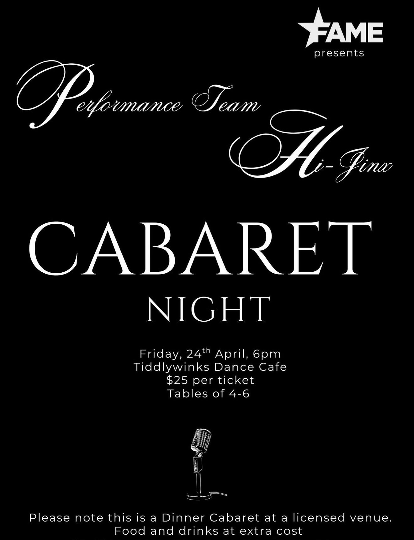 This show is perfect for young performers to watch our seniors, and Fame FAM and Alumni together and cheer on the NEXT generation. Tickets are $25 each and reservations for tables can be made via hello@fameperformingarts.com.au.